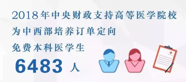 2018年中央财政支持高等医学院校为中西部乡镇卫生院培养订单定向免费五年制本科医学生共计6483人,专业包括临床医学、中医学、蒙医学、藏医学和傣医学。
