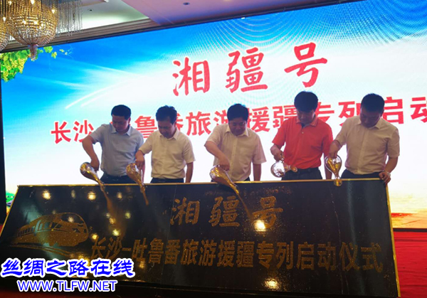 丝绸之路在线网讯 今年是湖南省对口支援吐鲁番20周年,也是吐鲁番与长沙缔结为友好城市一周年。为深入贯彻落实中央关于新疆工作的有关精神,加大湘吐两地旅游合作,2018年5月16日上午由吐鲁番市政府、湖南省旅发委、湖南省援疆前方指挥部在长沙通程国际大酒店联合举办了2018年“天山梦·湘吐情“湖南人游吐鲁番旅游推介会暨“湘疆号”旅游援疆专列启动仪式。