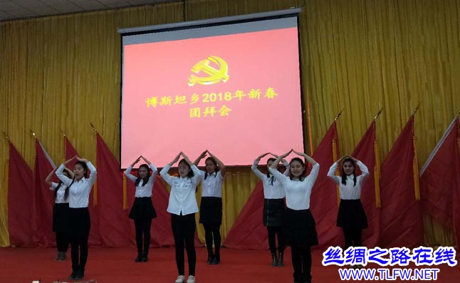 2月13日下午,托克逊县博斯坦乡组织全乡机关干部、退休干部及各村党总支书记、村民小组党支部书记、“四老人员”等200余人举行2018年新春团拜会。大家欢聚一堂,共庆新春佳节,同叙美好明天。(海热妮萨·阿卜杜热合曼)