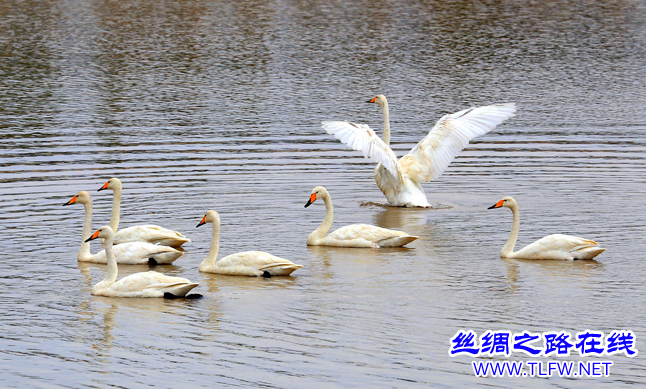丝绸之路在线网讯(文/图 通讯员 李靖海 沈波 吴双)7月3日,在新疆托克逊县,10多只白天鹅来到白杨河托克逊县城区段内,与这里的诸多野生水鸟和人工放养的麻雁一起“结伴”自由嬉戏,时而振翅起舞,时而曲颈戏水,呈现一派人与自然和谐画卷。这群白天鹅也是当地首次发现如此之多的白天鹅群,特别是在夏季更实属罕见。