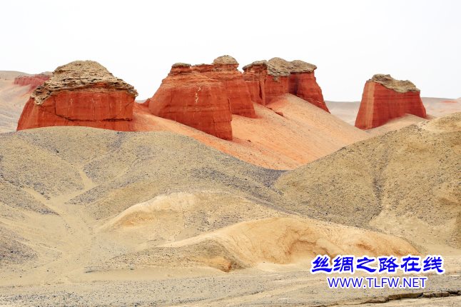 这一座座“红色城堡”像是被造物主从其他地方搬过来一样,除了它是红色以外,周边的山均是黄土色,形成了鲜明的对比。