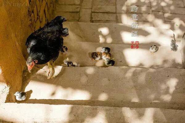 小院里阳光饱满通透,光线滤过青绿的藤蔓们,透过土黄色的泥墙,洒在院子的每个角落。矮墙上的铜壶被照的发亮,墙角下,一群小鸡叫喳喳到跟着母鸡从石板上跑进葡萄地里,小鸡的毛简直像是一根根烫松软后、给粘上去的,蓬松松的。院中心这片葡萄藤是矮墙围起来起来的,走不进去了,只能蹲那听着它们叽叽喳喳的声响。