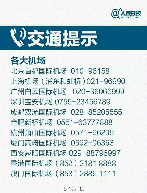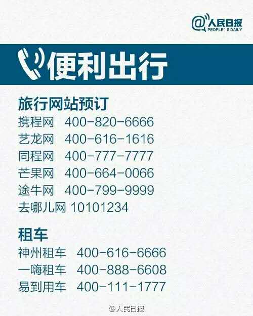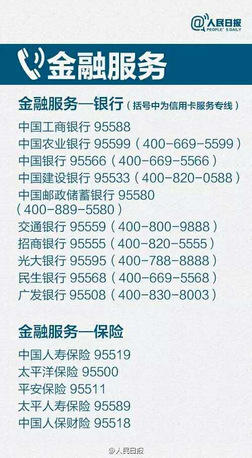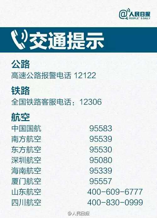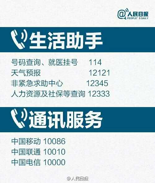 电信局投诉电话: 180 交通事故报警: 122