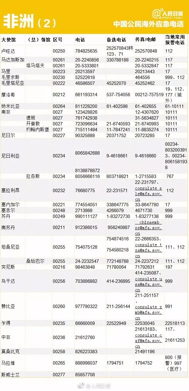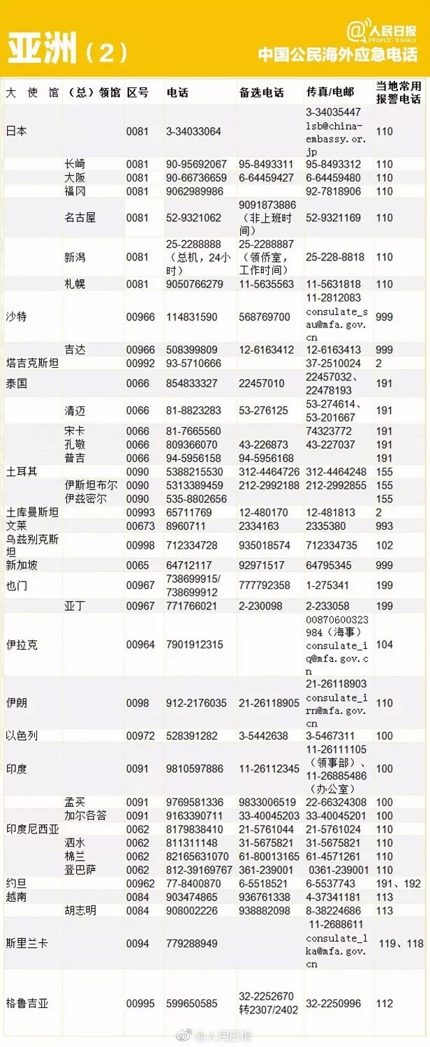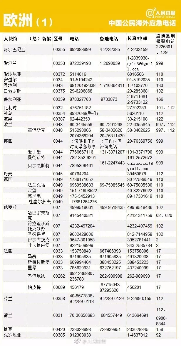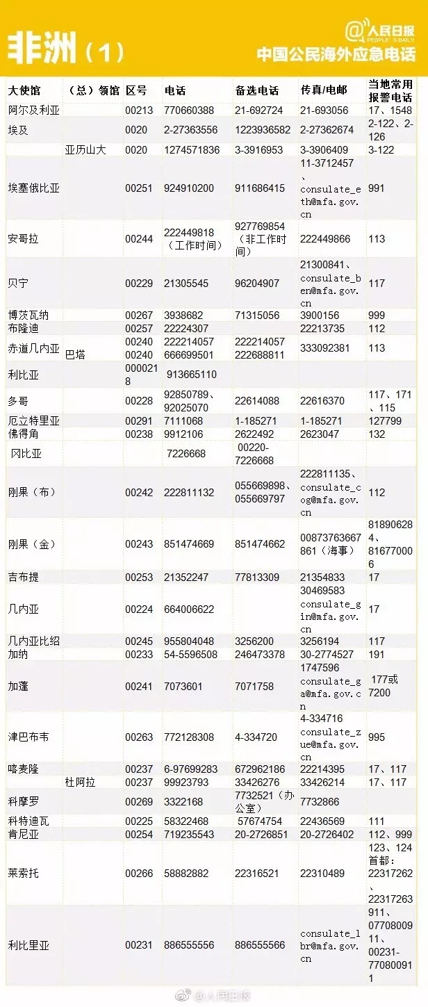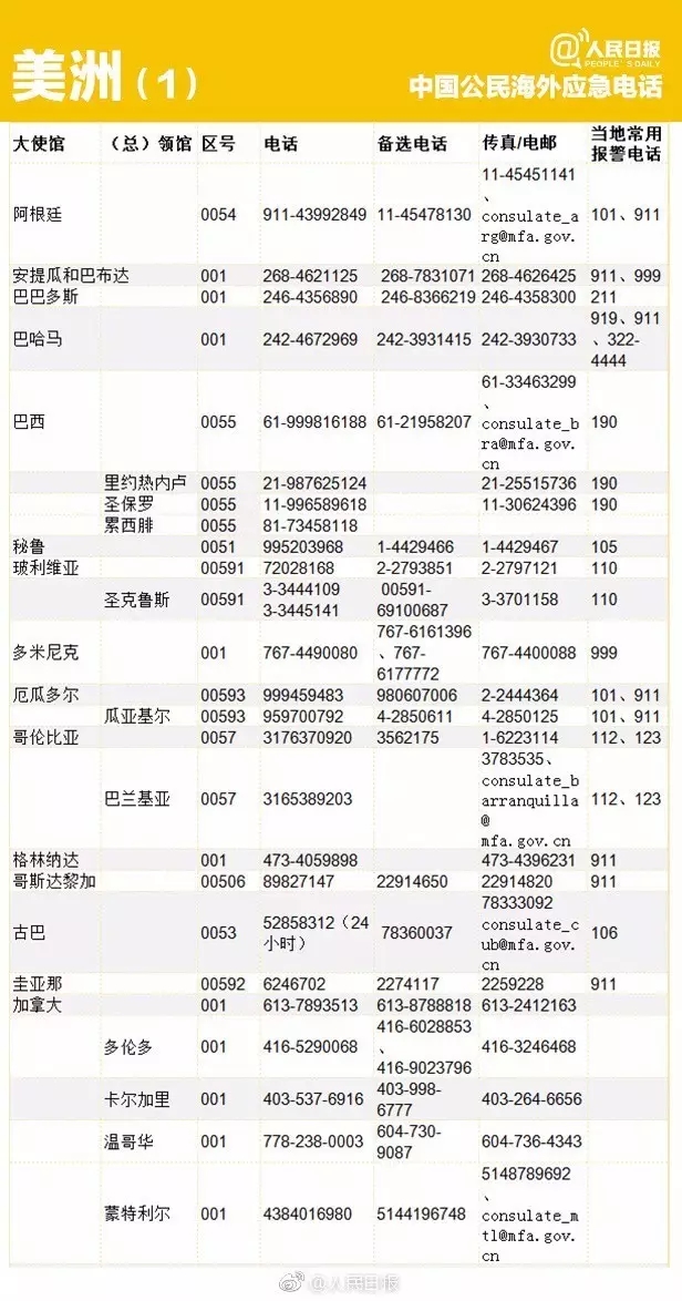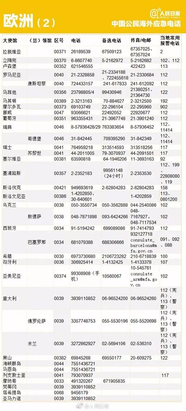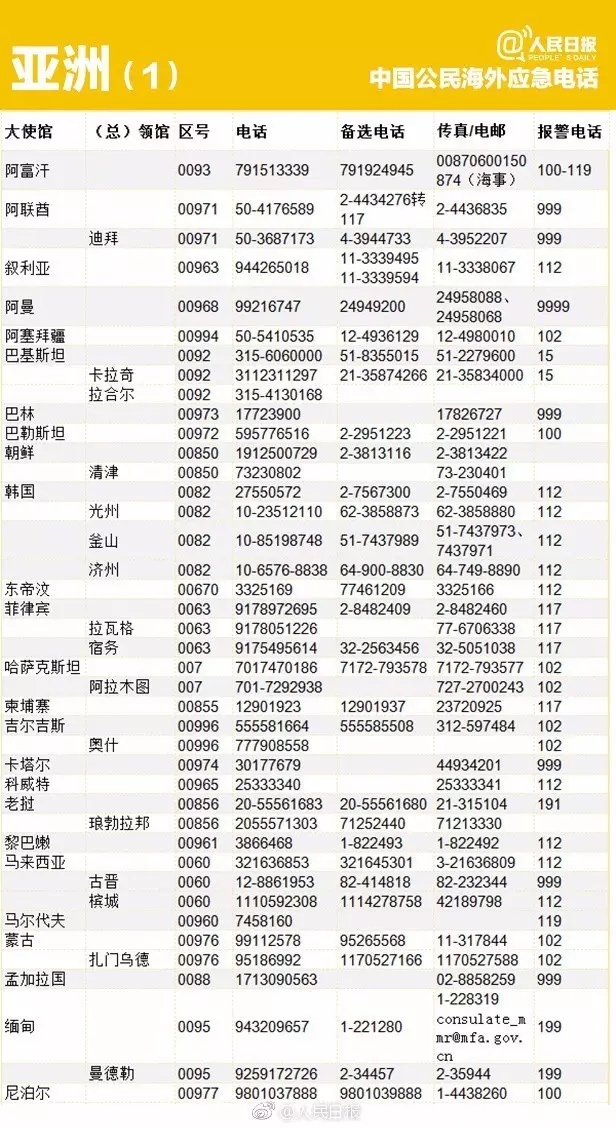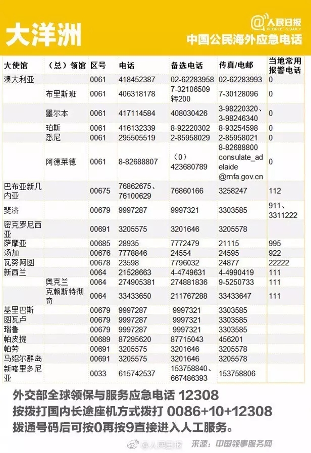 出国丨转存重要号码!196个国家和地区应急电话!