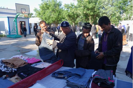 随后,村民们来到兵乓球桌旁挑选市政府办公室捐赠的50余件衣物,一边笑着一遍试着大小,村民赛比拉·扎依丁说:“感谢市政府办公室的亲戚们给我们送来的衣服,这些衣服款式很时尚,我们很喜欢。我们深切地感受到了民族团结大家庭温暖,我们一定要珍惜这来之不易的大好环境。”(吐鲁番市政府办公室驻托克逊县夏乡布拉克佰什村工作队 房玉瓴供稿)