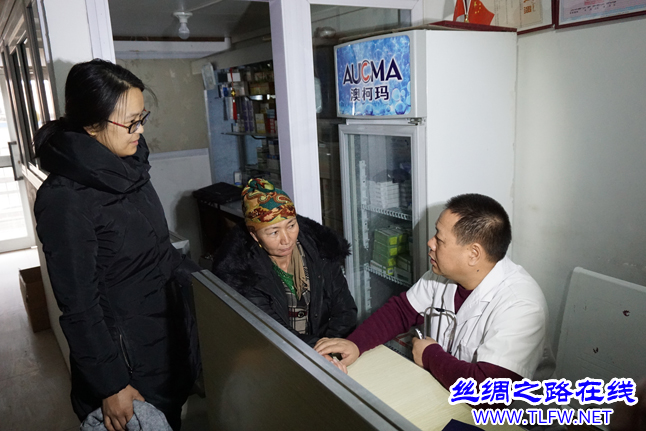 12月17日,记者来到托克逊县伊拉湖镇,看到五星小学教师石磊正带着自己的“亲戚”努斯来提·热西提在诊所检查身体。石磊告诉记者:“当我们来到努斯来提大姐家时,她躺在床上,情绪比较低落,病情好像比较严重,我就问大姐‘怎么不去看病呢?’大姐说:‘家里孩子还小,没有车去医院也不方便。’我们有车,带你去看病,经过再三劝说,大姐终于同意了。”