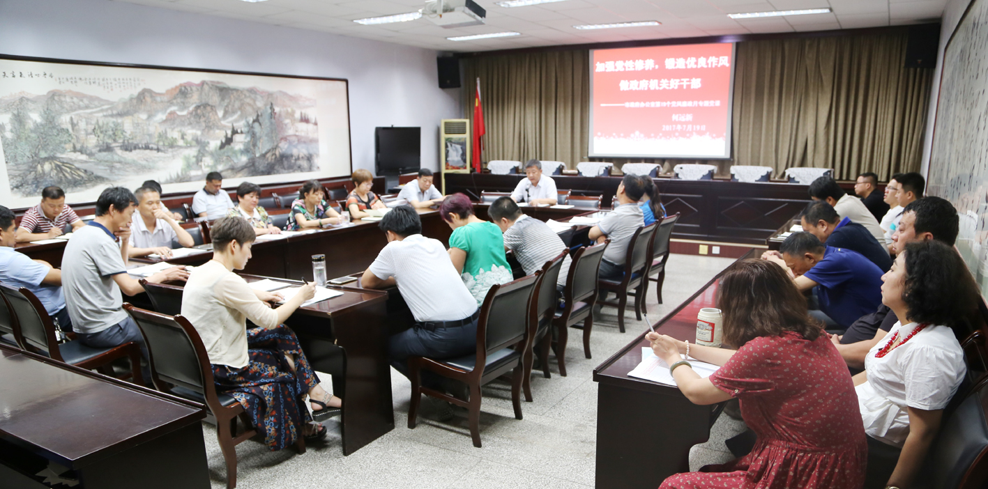 讲课中,何主任从“加强党性修养、锻造优良作风的重大意义,办公室存在的问题以及加强党性修养、锻造优良作风的方法途径”等三个方面向党员干部进行了阐述。