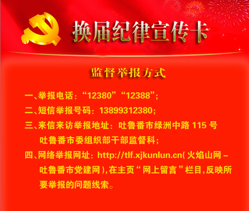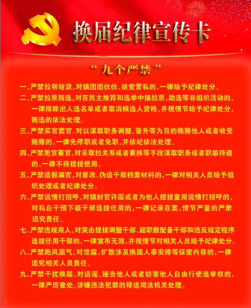 最新消息 · 换届纪律“九个严禁”    2016/04/07      · 《党政领导干部选拔任用工作条例》“十不准”    2016/04/07      · 监督举报方式    2016/09/20      · 政协高昌区第一届委员会第一次全委会议举办委员培训    2016/09/02