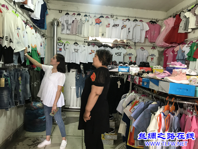 顾客在热依汗古丽的店里选购童装